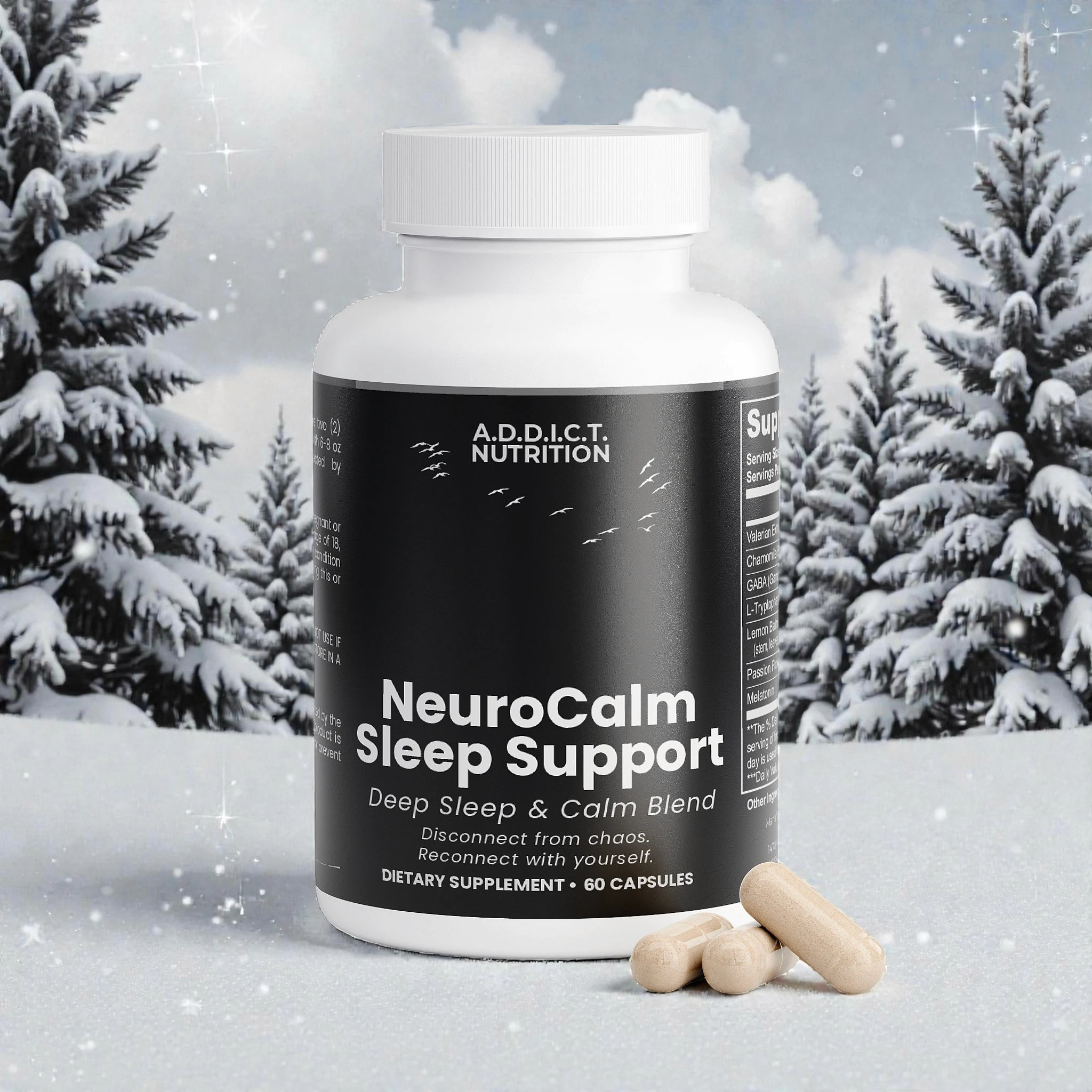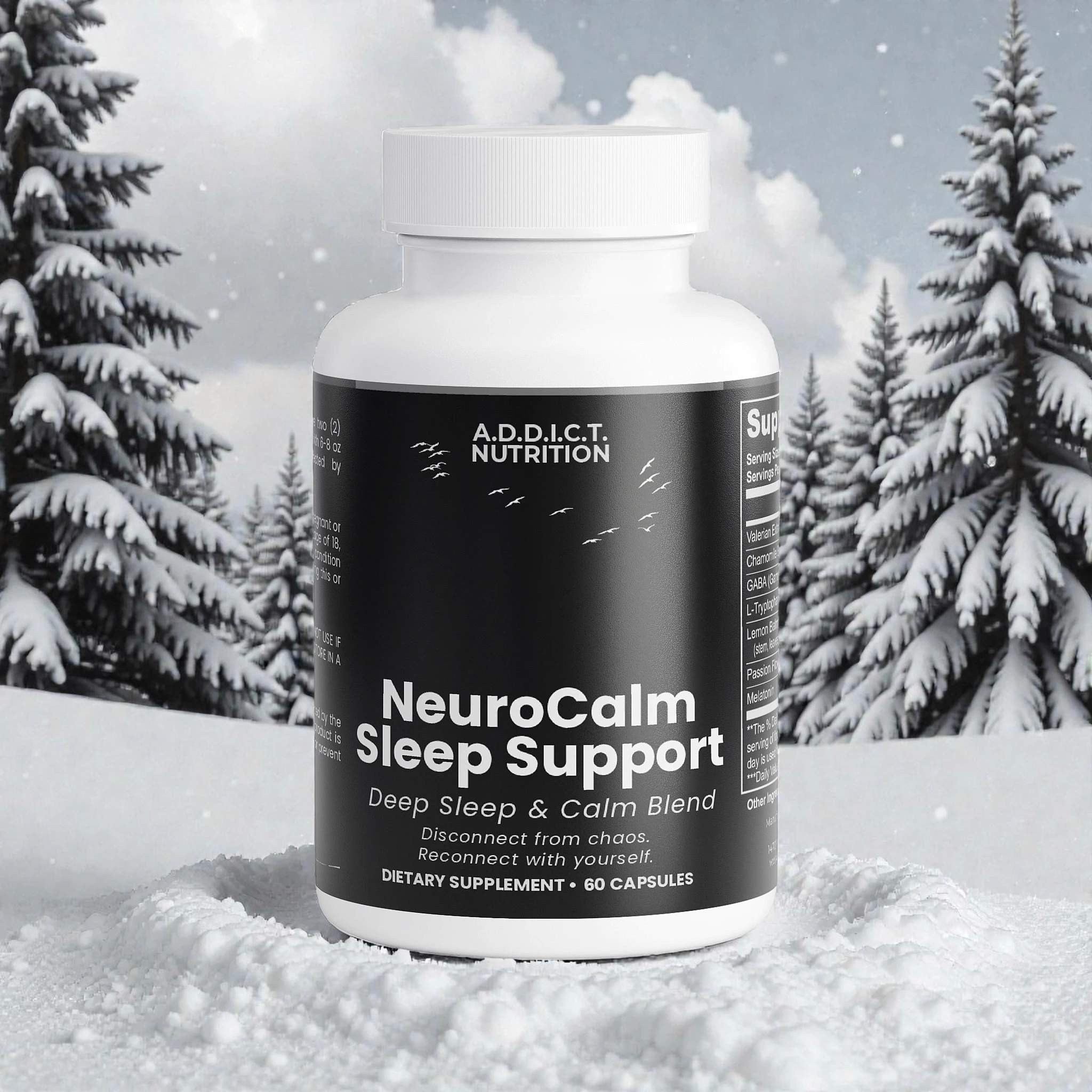 Each ingredient in RECONNECT was selected for one purpose: to calm without suppressing. Valerian, Chamomile, Lemon Balm, Passion Flower, GABA, L-Tryptophan, and Melatonin work synergistically to reduce overstimulation, support relaxation, and reinforce natural sleep rhythms. Nothing aggressive. Nothing unnecessary. Nothing artificial.